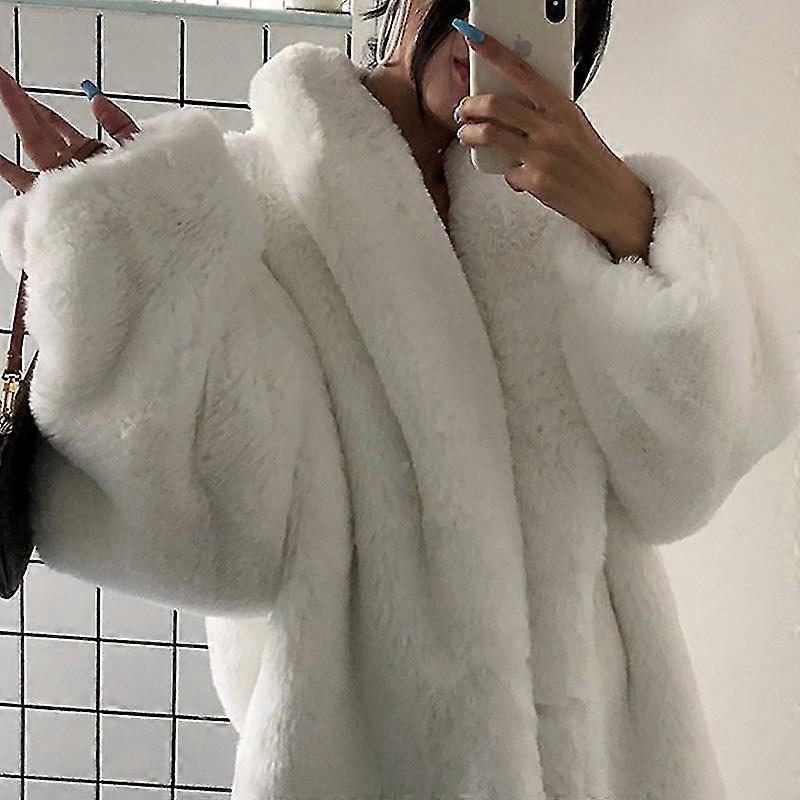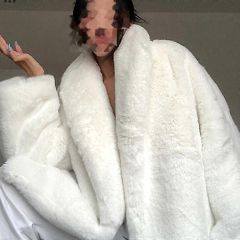 Vit pälsjacka Vinter Överdimensionerad Tjock Varm Vit Fluffig Fuskpäls Kappa Kvinnor Lös Casual Snygg Koreansk Mode Streetwear-Yvan